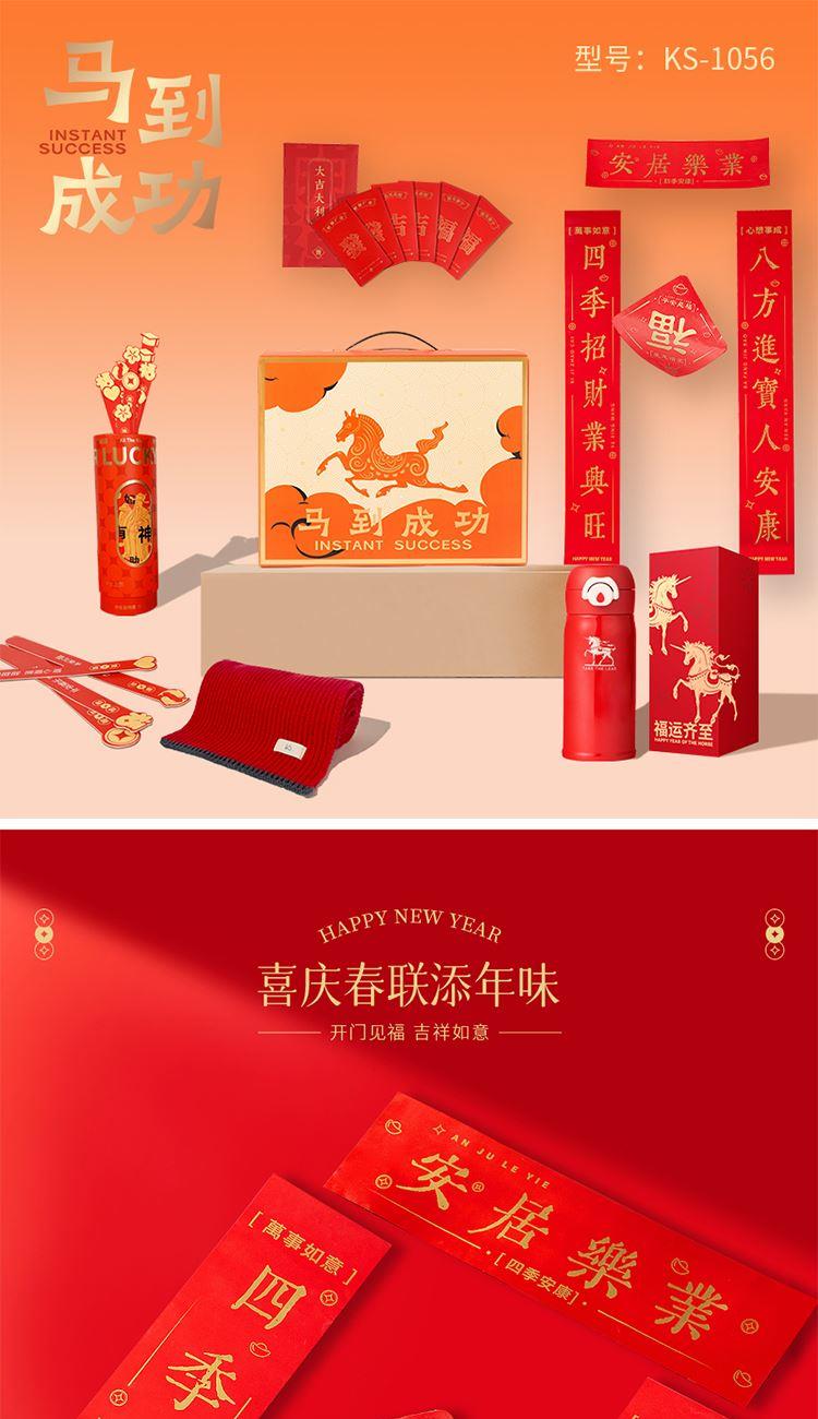 保温杯/370*180mm(18签入)铜版纸 春联/福贴*1副(157G铜版纸) 红包/铜版纸200g 围巾25*160cm/99.9%涤纶 橙米撞色礼盒,搭配烫金复古骏马主题插画,时尚亮眼,新年氛围瞬间拉满。“马到成功”,是更适合商务伙伴与新老客户的新年祝福佳品,心意与寓意兼得。 内含经典春联红包套装,保温杯、求签桶、针织围巾。 支持小批量灵活定制,打造专属年礼,彰显诚意。 以下代发价不含偏远地区:黑龙江、吉林、内蒙古、青海、云南、宁夏、海南、贵州、甘肃、新疆,(西藏地区按官网核价)