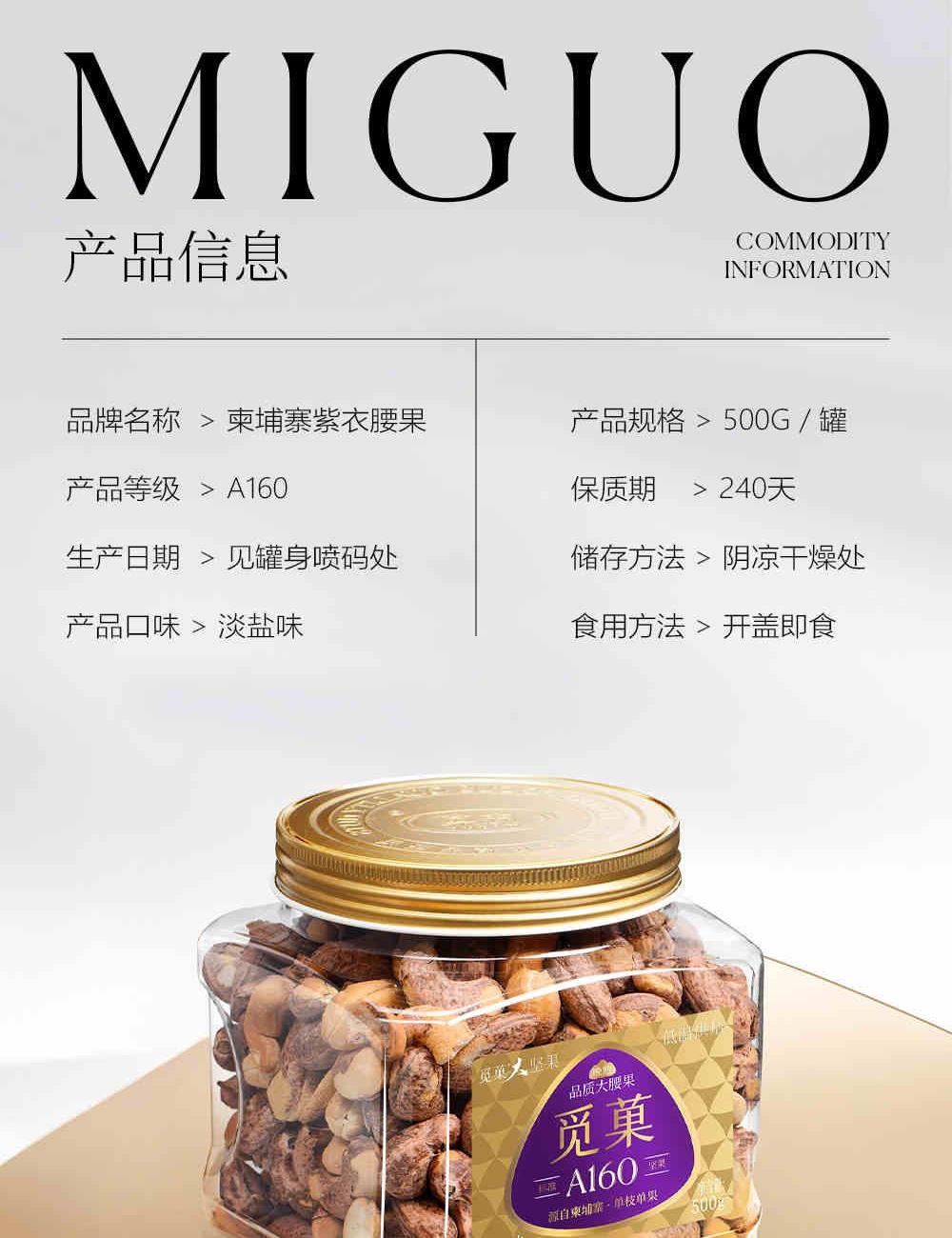 觅菓柬埔寨A160紫衣腰果仁500g