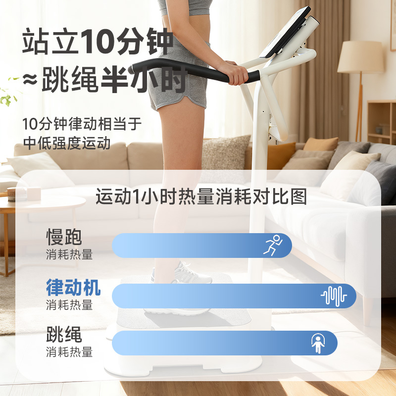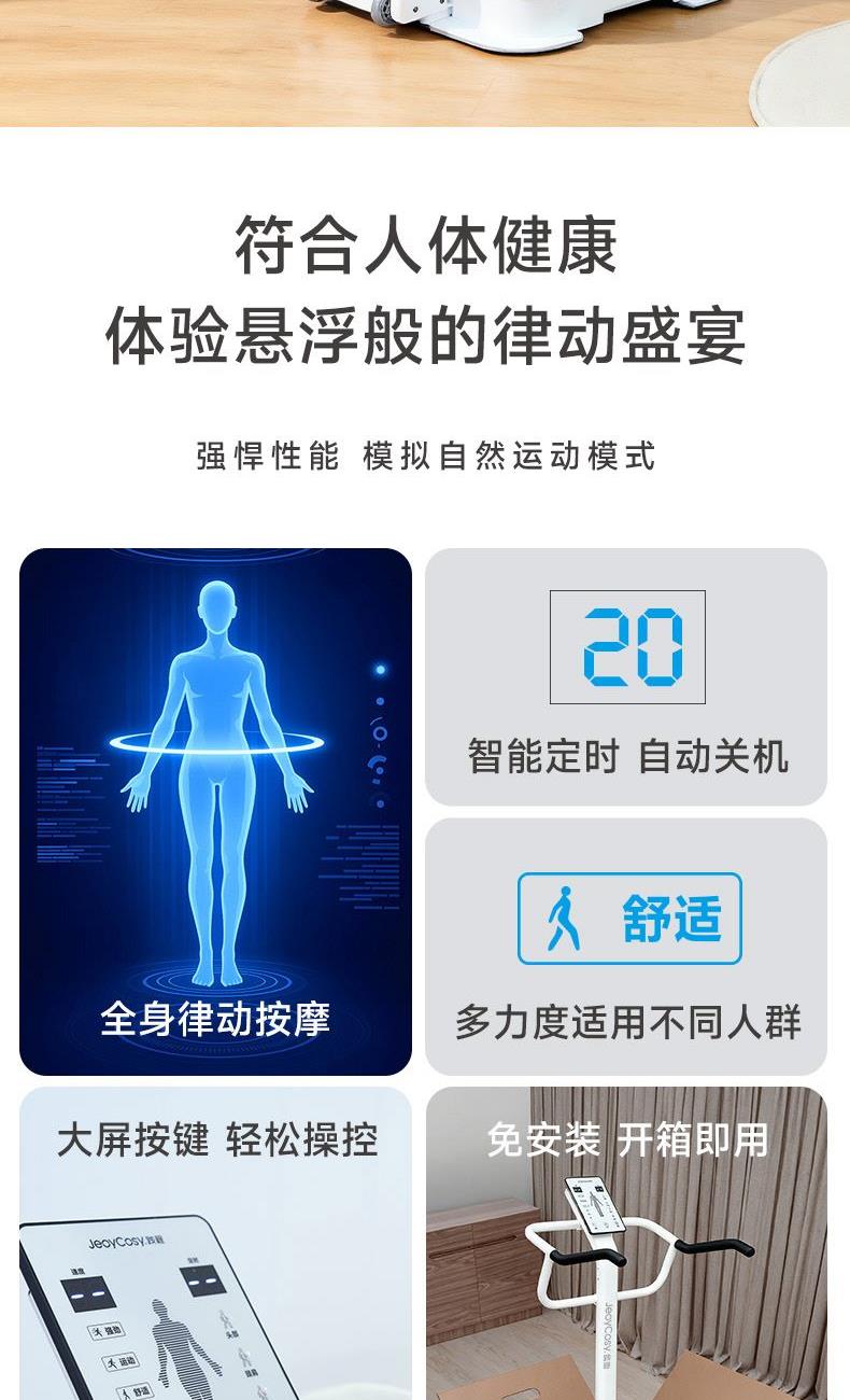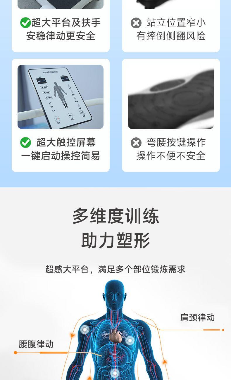 1、多功能集成模式,模拟慢跑、步行、骑行等运动方式 2、高效电机,动力更强,效果更佳 3、液晶大屏幕 一键启动 操作便捷 功能分明 4、人体工学扶手设计,轻松站立,运动更安全