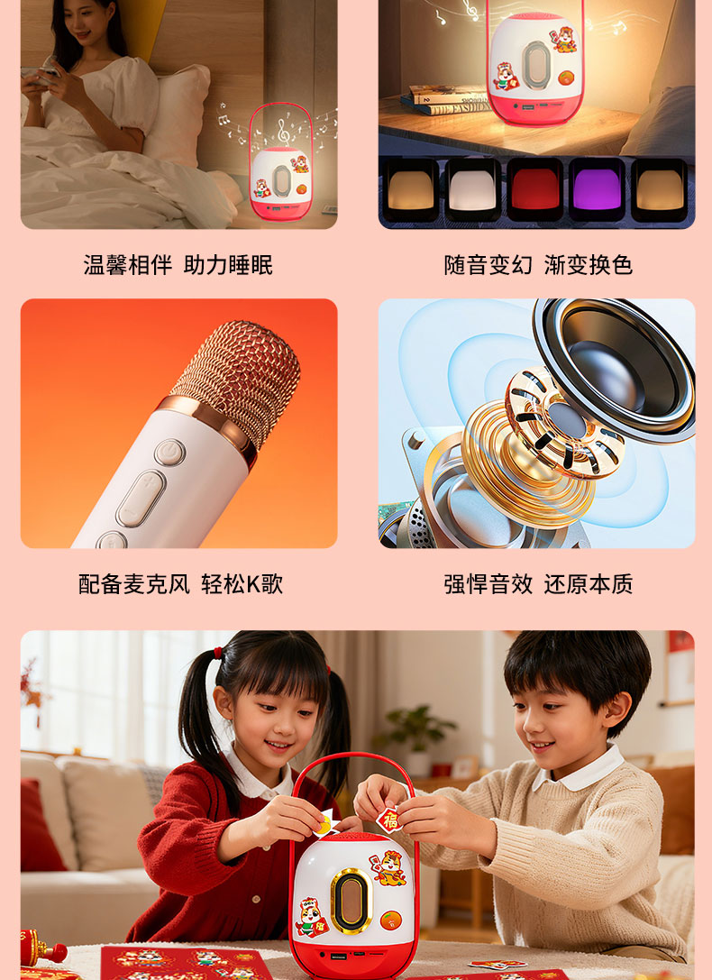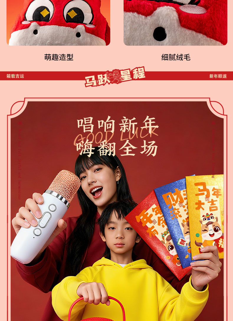 产品配置:20寸行李箱、多功能蓝牙音响加氛围灯加唛、十八味药材泡脚包30袋、一锭发财抱枕、马年大吉红包*6个