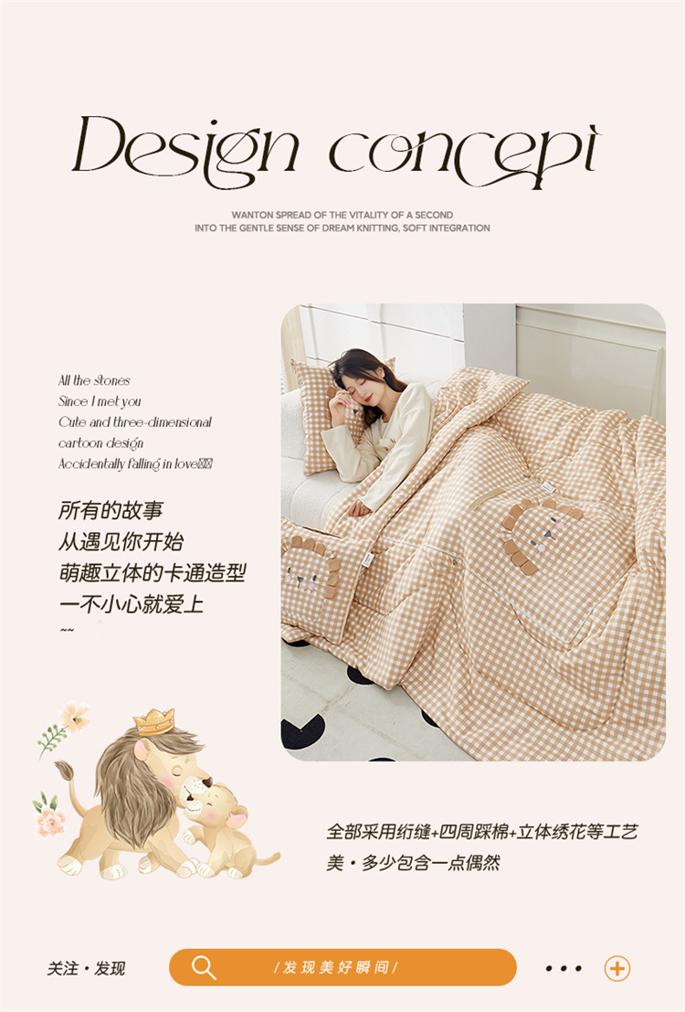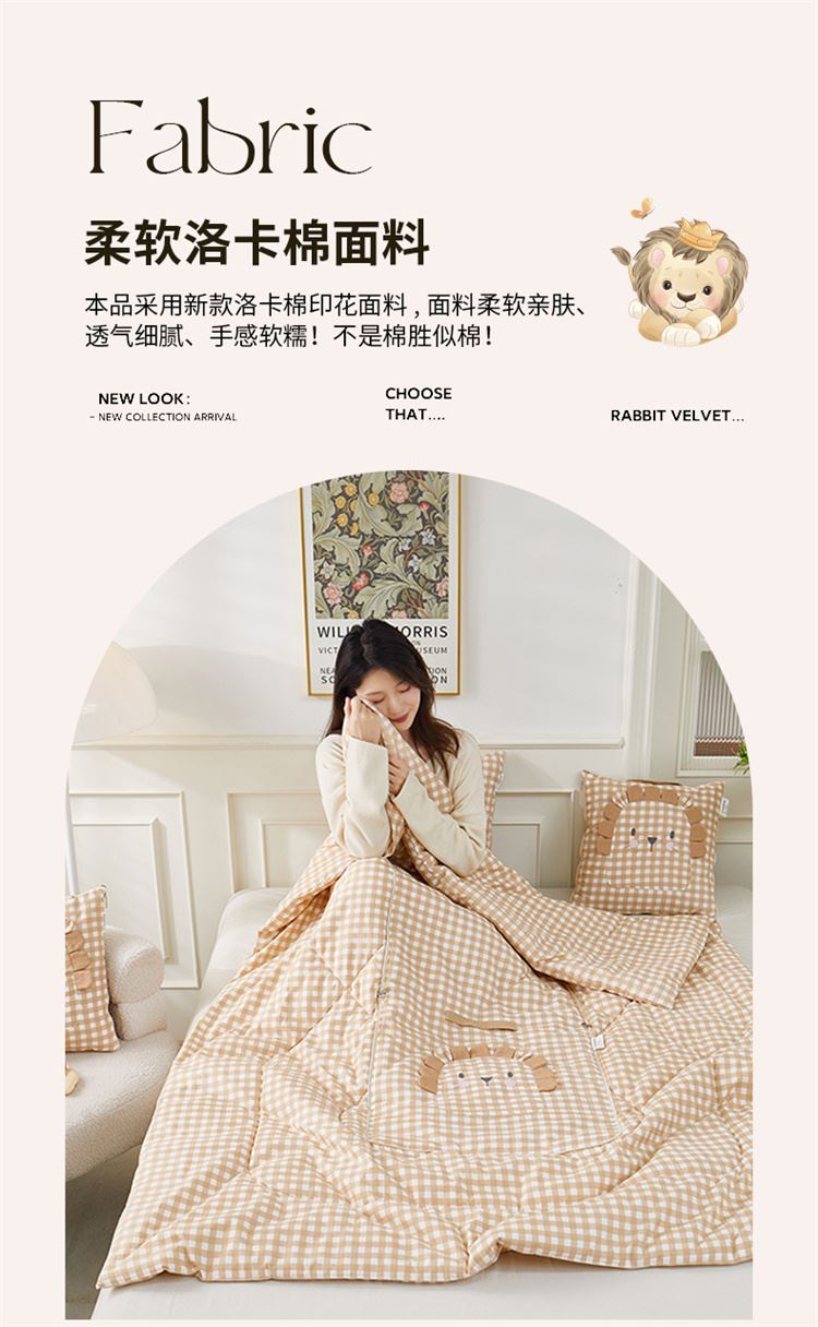 蕊丝坊家纺洛卡棉印花手提卡通绣花系列抱枕被