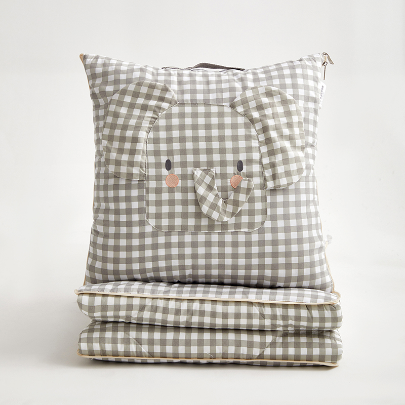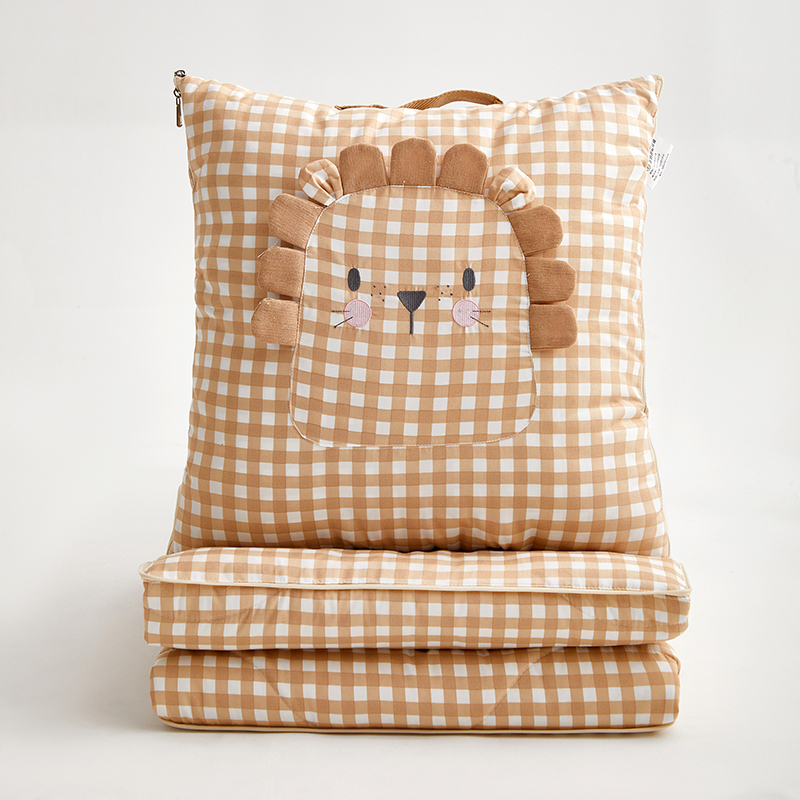 花色:手提款大象;手提款小狮子 规格:折叠40*40cm展开105*150cm 面料:洛卡棉(聚酯纤维 ) 填充:整张羽丝棉(聚酯纤维 ) 工艺: 立体绣花 是抱枕也是被子,萌趣立体的卡通造型,全部采用绗缝 +四周彩棉+立体绣花等工艺美手提款,别出心裁的设计,柔软罗卡棉面料, 柔软亲肤细腻, 手感软糯,不是棉胜是棉。