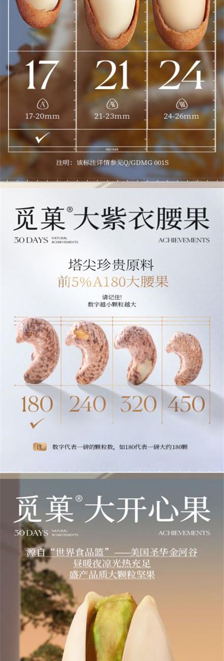 晚松A+138g 开心果248g A180大紫衣腰果268g 大碧根果248g 夏威夷果258g 巴旦木仁320g
