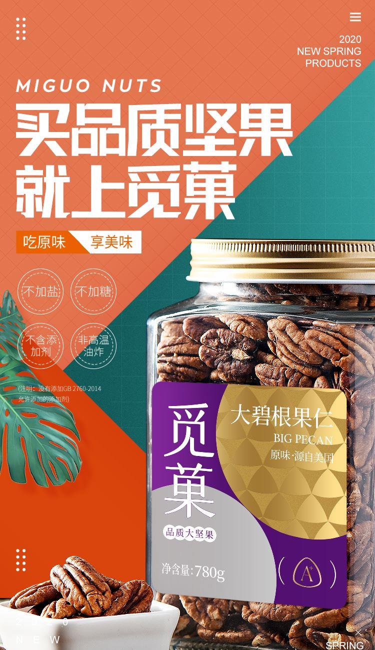 1、碧根果 ,产自美国 :也名美国山核桃、 长寿果 ,是一种十分美味的坚果食品 , 而 且碧根果营养丰富 , 呈椭圆形 , 2、 口感: 口感酥脆 , 嚼食淡淡的奶香 , 唇齿留香回味 3、 营养: 蛋白质 , 单不饱和脂肪、 维生 素B1 4、 壳薄仁厚 ,果仁酥脆 ,奶香回味 , 营 养丰富