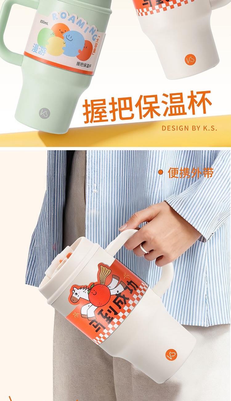 把手杯/850ML杯身/不锈钢(SUS304)外盖/聚丙烯(食品级PP)+ABS/吸管密封圈/硅橡胶