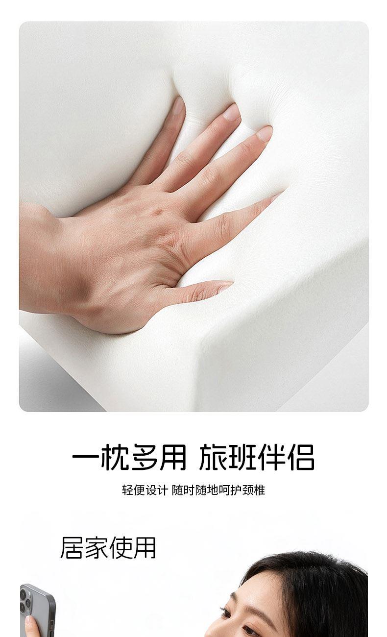 1、旅途休息颈姿支撑 | 办公维持眺望姿态 2、小巧轻薄 支撑颈压 3、折叠随行 无缝转场 4、透气循环 体感干爽