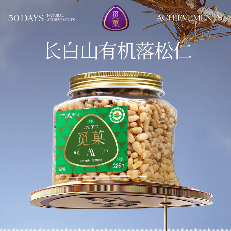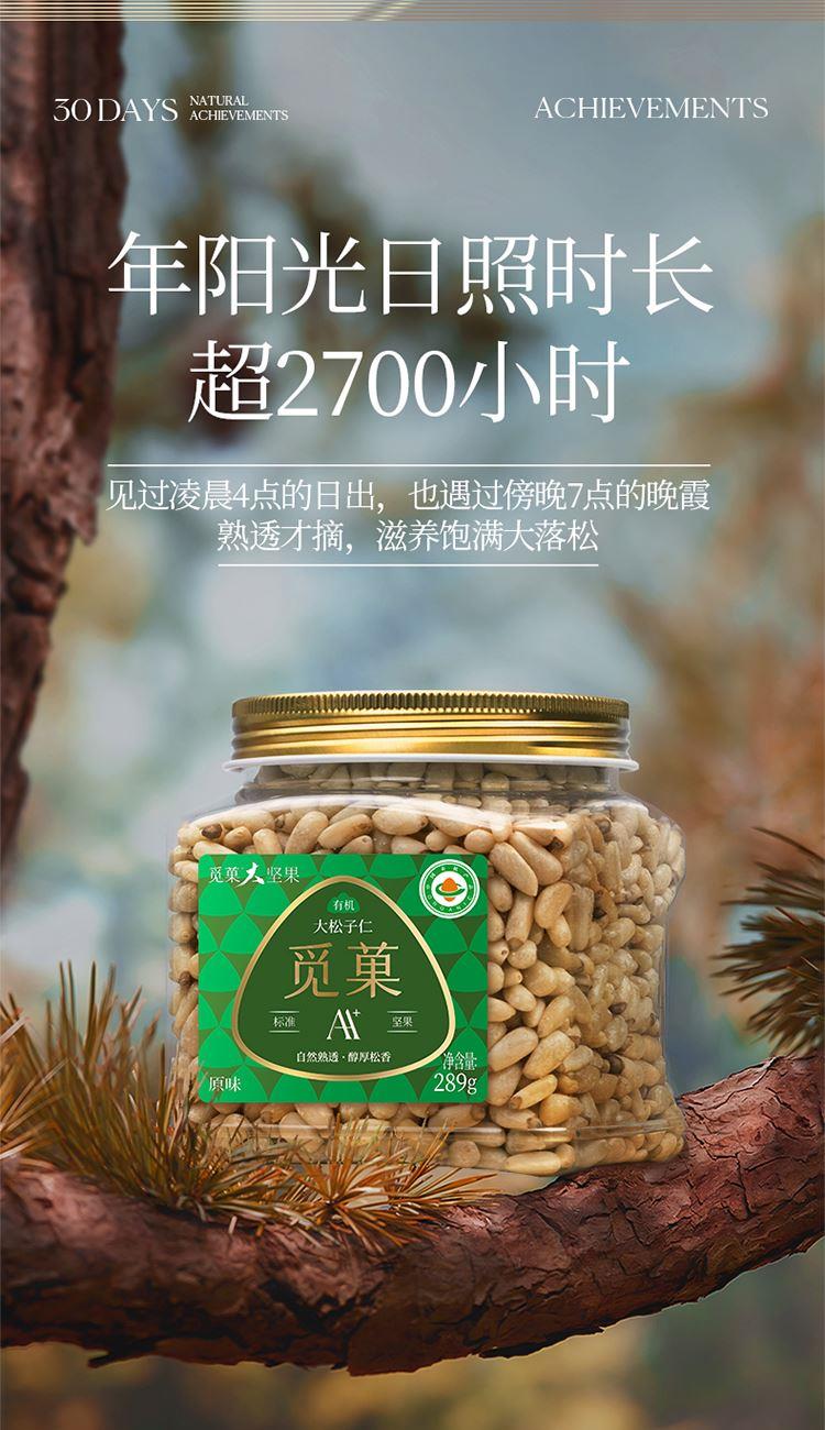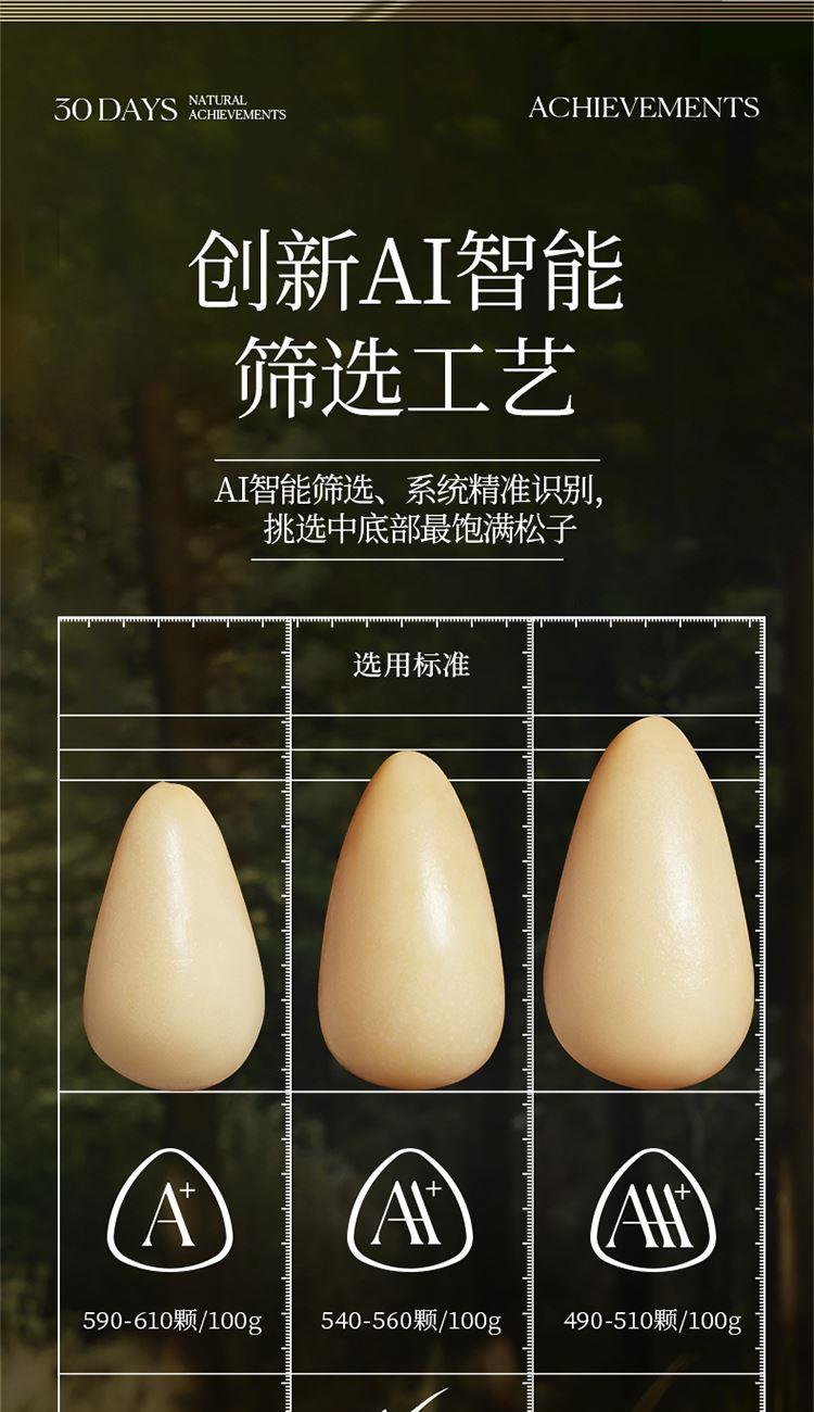 有机认证 双有机认证 全程可追溯 创新工艺 AI智能筛选 挑选中底部饱满松子 松香醇厚 原色原味生仁自然浓厚松香