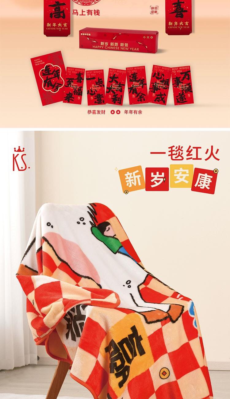 充电宝/77x36x26mm(5000mAh)/ABS+PC+锂电池 钛杯260ML/5.5*17CM304不锈钢+镀钛内胆+纯钛茶隔外冰花纹喷漆 毛毯/95x148cm、 300克涤纶针织布 收纳包/22*13.5*10CM 99.9%涤纶 春联/福贴*1副(157G铜版纸) 窗花/pvc10丝带纸140G静电膜23.5*23.5cm 红包/铜版纸200g 健身包:50CM*27CM 主料:尼龙塔丝隆,成分:99.9%尼龙里布:桃皮绒+210T,99.9%涤纶 肩带和提手:99.9%涤纶 采用运动健身包作为外包装,搭配精美元宝腰封,时尚又环保,年味亦十足。 更适合作为年轻员工福利及注重实用性的客户赠礼,活力开启健康新一年。 内置经典年品(春联、红包、窗花)与零食礼盒,搭配实用好物(保温杯、充电宝、躺赢毯、收纳包),心意满满。 支持小批量灵活定制,打造专属年礼,彰显诚意。 以下代发价不含偏远地区:黑龙江、吉林、内蒙古、青海、云南、宁夏、海南、贵州、甘肃、新疆,(西藏地区按官网核价)