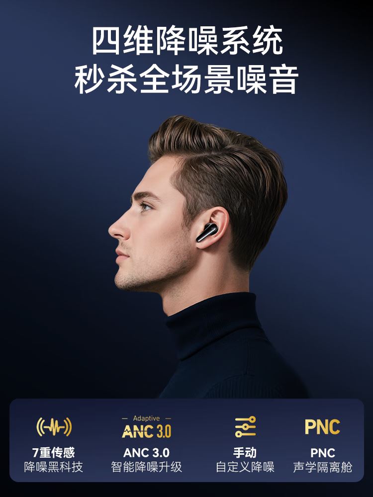 1、舒适质感/轻奢磨砂设计 2、灵敏动态降噪/ANC 3.0降噪升级 3、持续监测环境/无损音质 4、ACAA4.0 数字分频/无感不闷耳 5、人体工学无感佩戴/高柔韧性透气耳帽 6、40小时续航/电子屏显