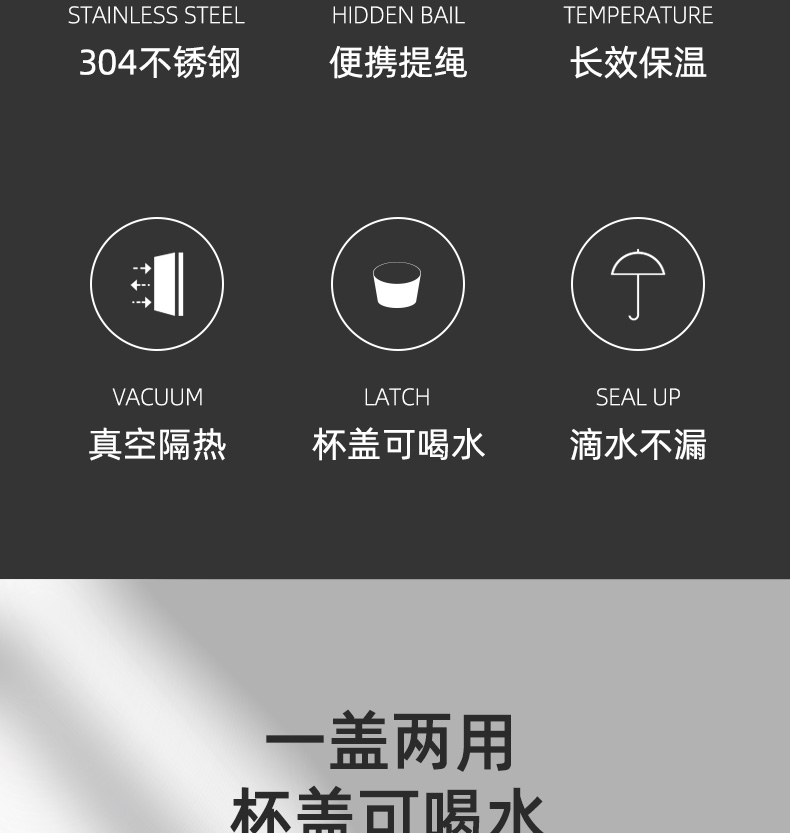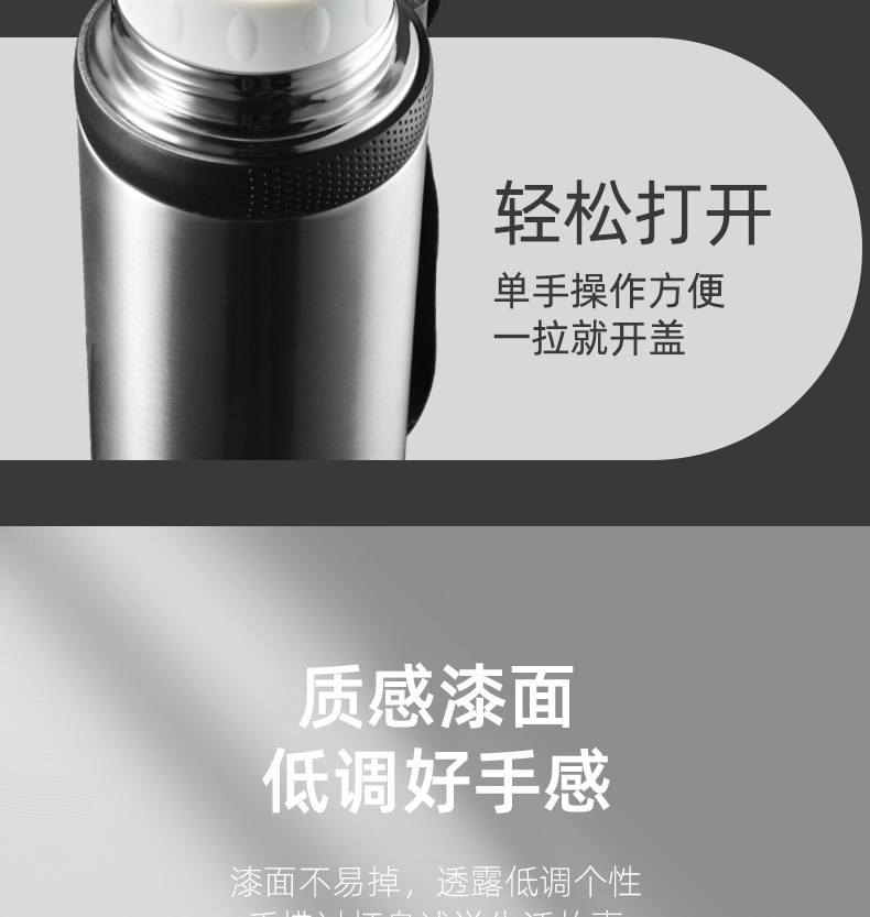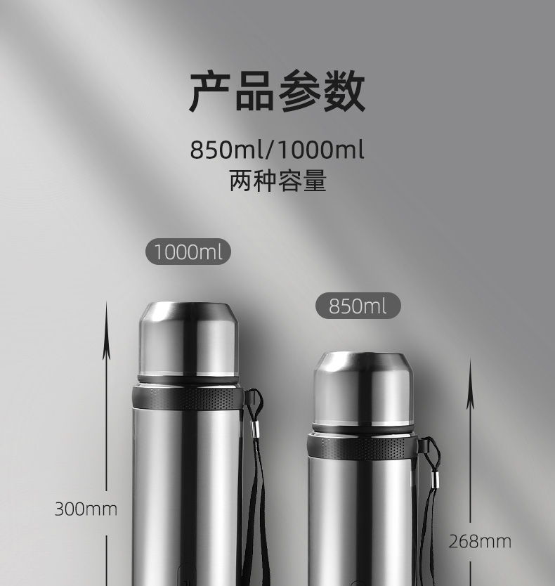容量:1000ml 尺寸:78*30cm 颜色: 本色 黑色 灰色 蓝色(316L内胆) 材质:316L奥氏体不锈钢内胆、食品级PP,PC配件 包装:单瓦盒