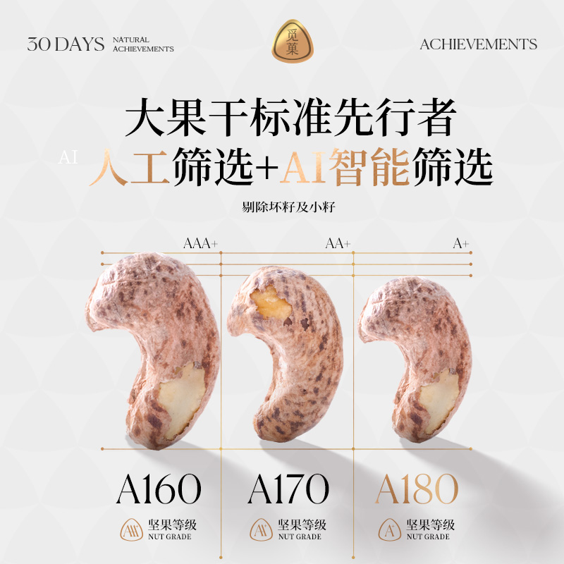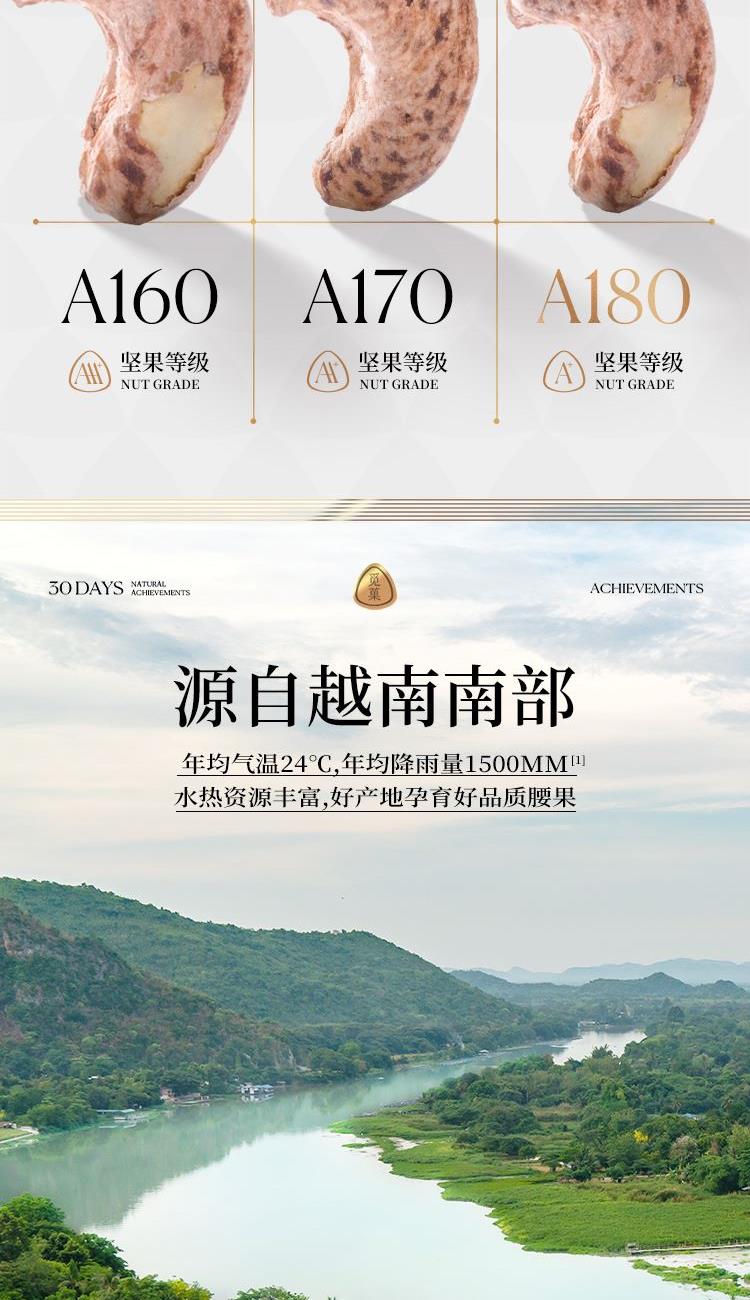 产地大不同 热带季风带 全年逾2000小时光合作用 富饶红砂土孕育丰盈大果 品种大不同 柬埔寨高产PN1腰果品种 技术更迭见证质量产量双增长 柬埔寨全新树种果实约180颗/磅 刷新传统颗粒标准 口感大不同 低温烘焙锁住醇厚酯香 酥脆绵香 香甜酥脆