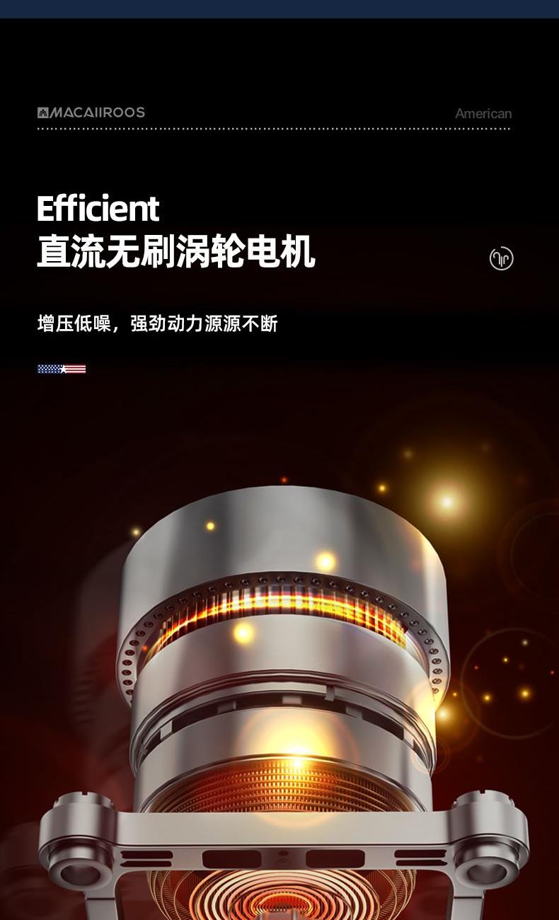 风大低噪直流无刷涡轮增压电机,风感饱满平稳,深夜吹风不扰眠;