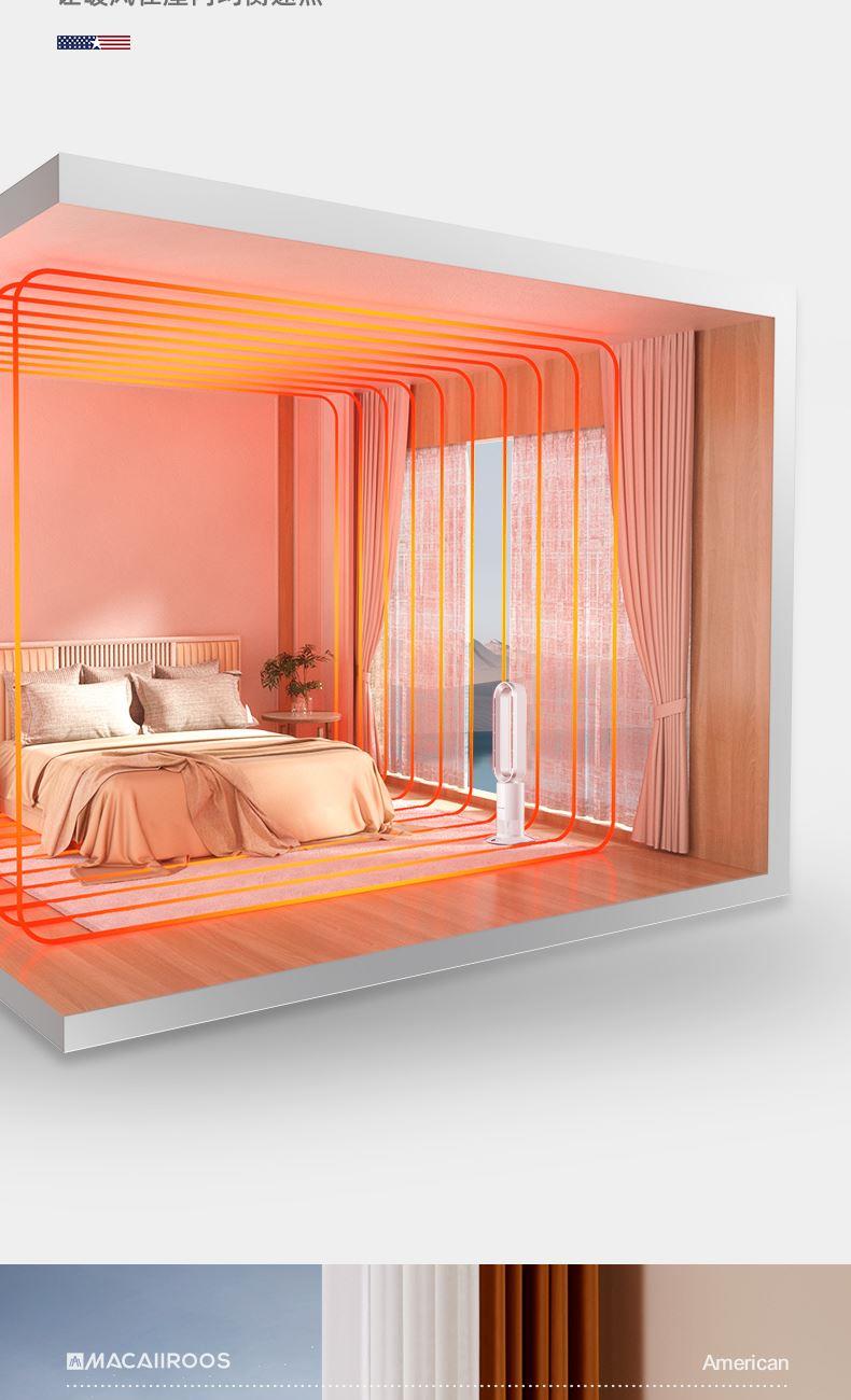 量身定制你的四季风;120°柔风大广角久吹不头疼,立体循环气流,全屋空气加速流通,倍感清凉;