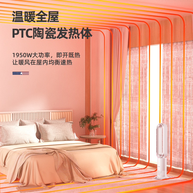 触屏/遥控双操作,10挡冷风/3挡暖风随心调,9h遥控定时,