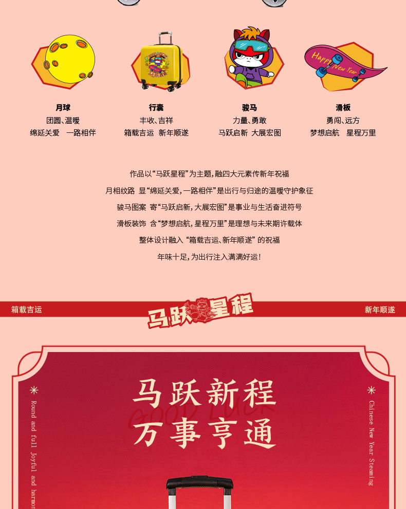 产品配置:20寸行李箱、旺旺大礼包147G 、一锭发财暖手抱枕、十八味药材泡脚包30小包一袋、马年大吉红包*6个